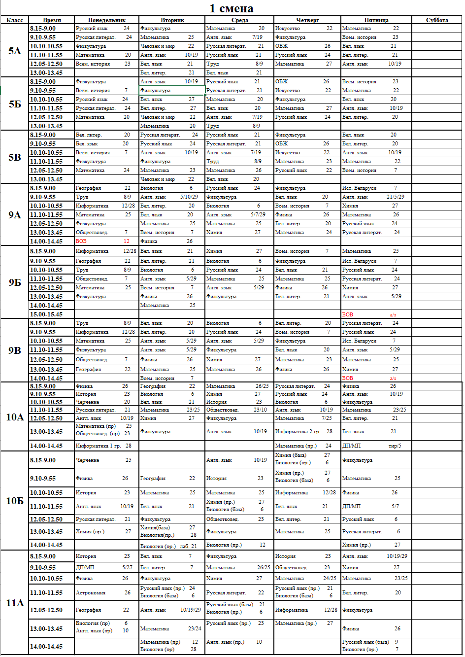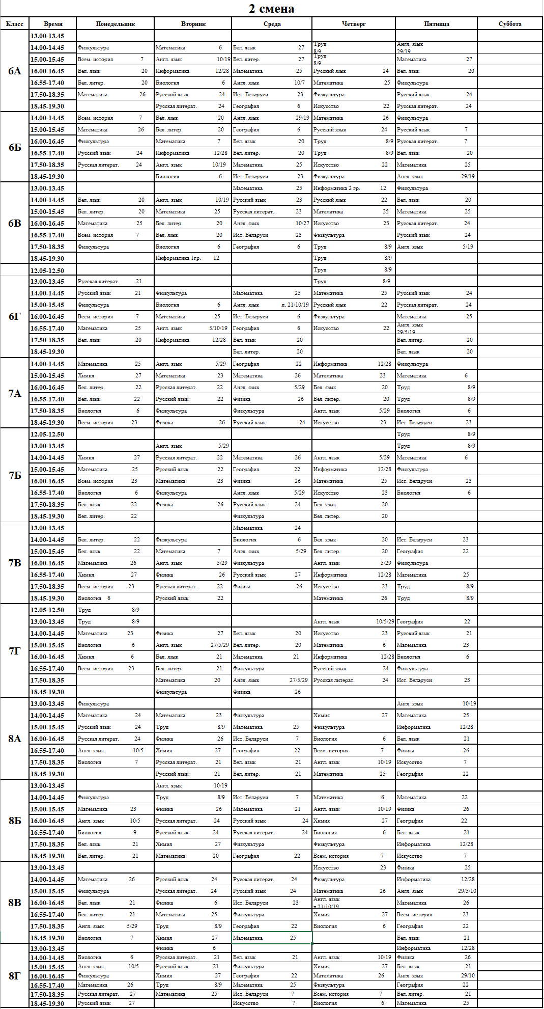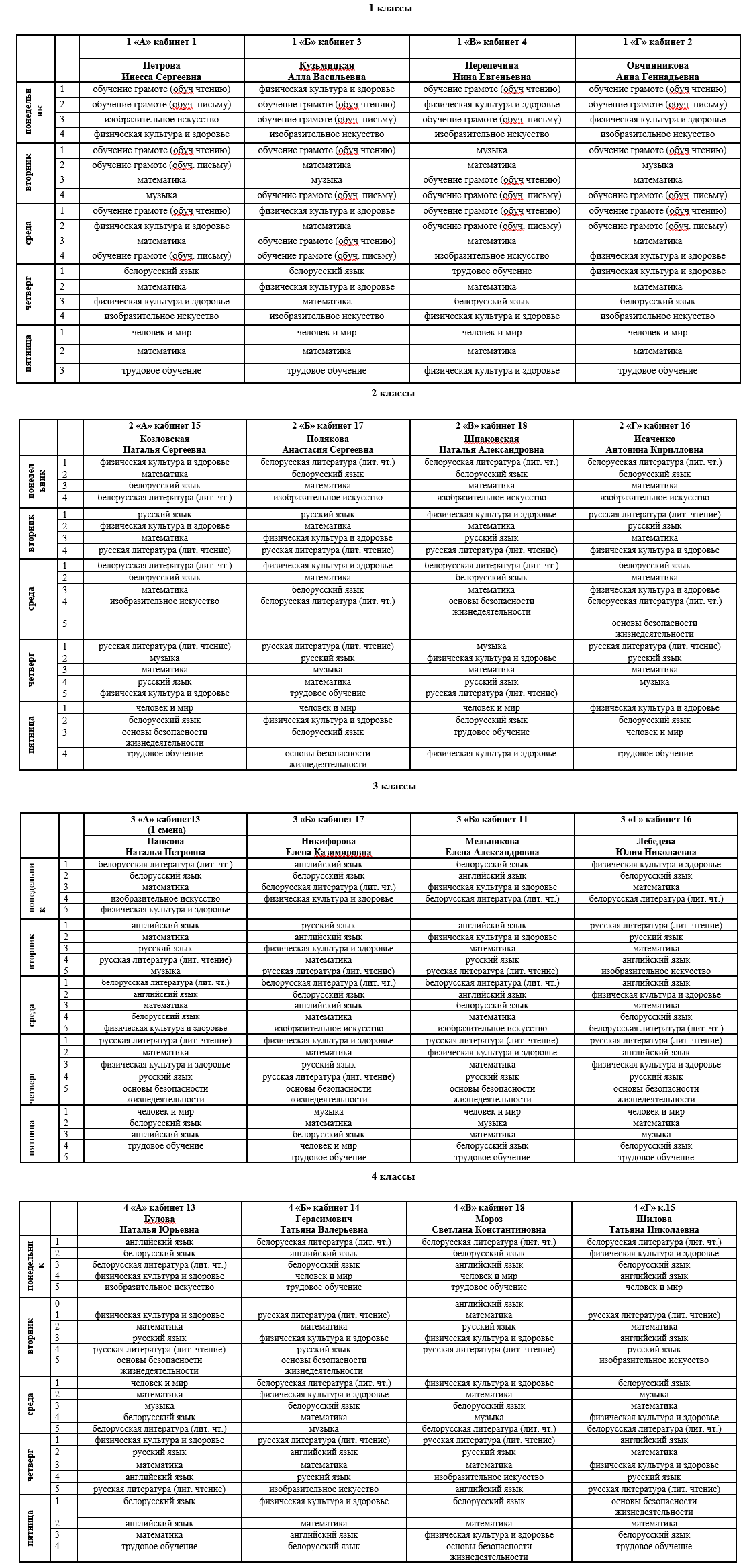 Расписание начальных классов на второе полугодие 2025/2026 года